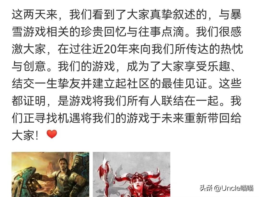 当然暴雪也是于昨日微博发布了一张情感卡牌,表示因为游戏与我们玩家相识,并且这结交一生的最佳见证,而他们也是正在寻找机遇将我们的游戏未来重新带回来给大家!