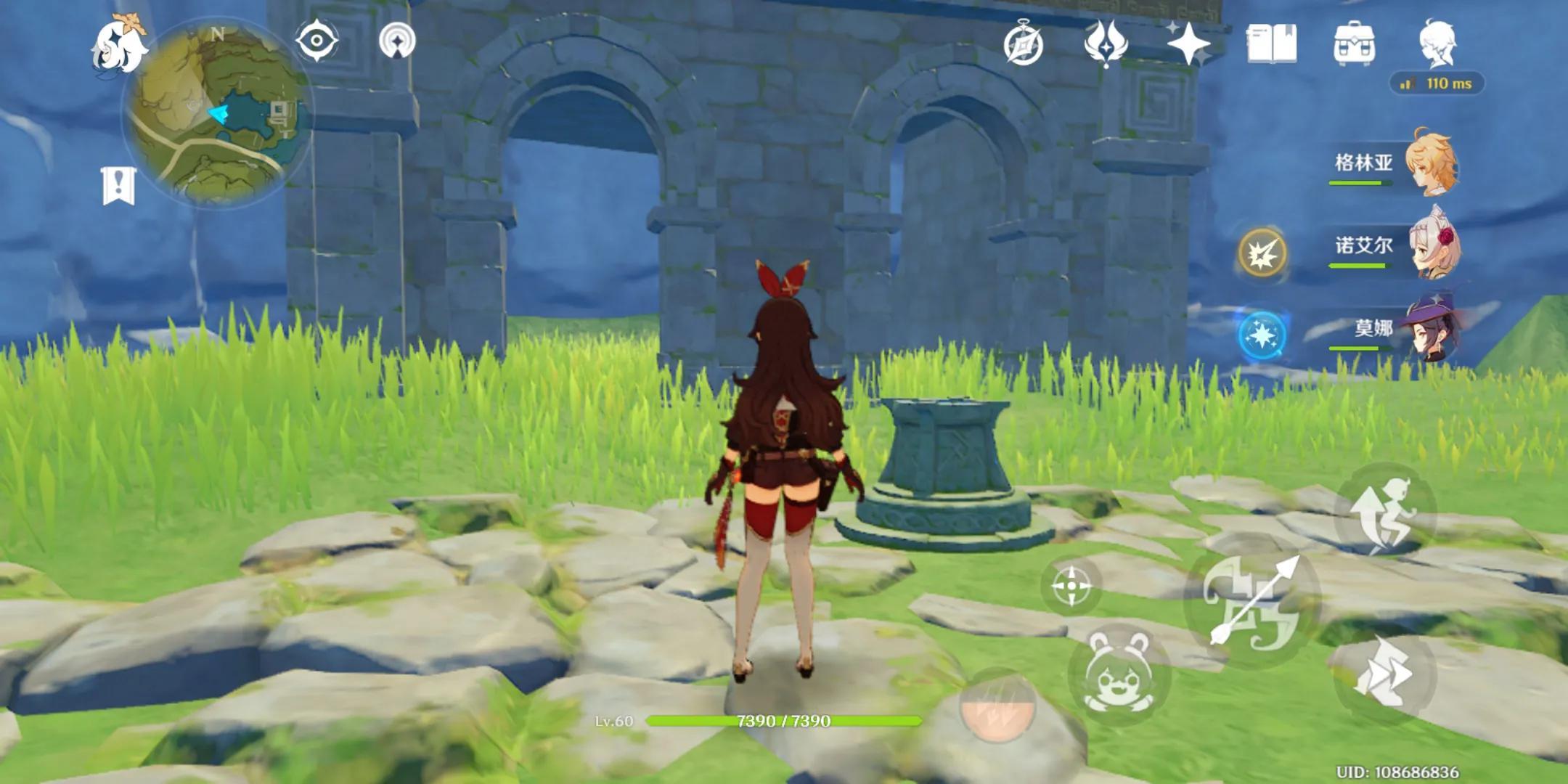 湖水下降后咱们就下去,前面就会有个宝箱被风元素罩盖着,打开罩子的方法就是在附近找到三个指引仙灵,前两个好找就在旁边,第三个指引仙灵的位置在下图蓝色箭头我所在的位置