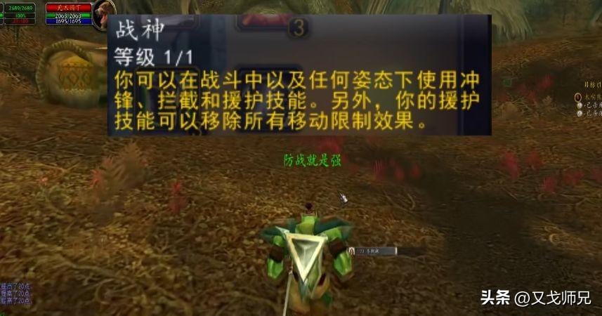 后续升级至20级之后,需要将强化复仇天赋和强化缴械天赋优先点满,此时输出能力和自保能力都能再次提升一个档次,尤其是有了强化复仇之后,可以同时拉三个怪一起输出。而使用此方法顺利升到五十级之后一定要选择天赋战神,此时就完全不受防御姿态的负面效果限制了,冲锋拦截等技能也可以在防御姿态下使用,这样战士的位移能力也会爆炸性提升。