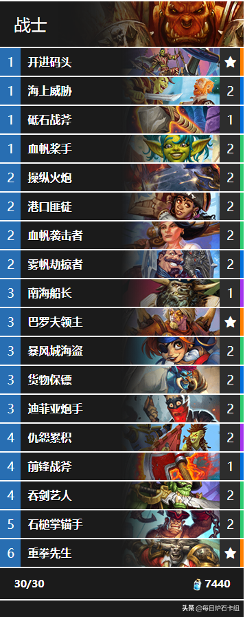 -由于卡组的特性,任务战多数被随从占据,而随从配置可变空间并不太大,毕竟标准卡池中的海盗并不多,为了做任务几乎所有稍微有点战力的海盗都纳入了构筑中。不过作者还是根据自己的理解,针对性地进行了微调。