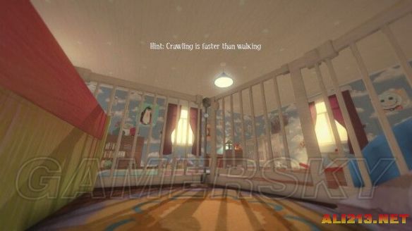 这里先移开左边的障碍物,从通道爬到另外一侧,在上垫子就可以跳出床外。