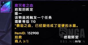 击败英雄或者史诗难度的寂灭者阿古斯,新团本的最终BOSS,将会掉落一个物品“寂灭者之血”,开启“!泰坦之血”的任务。