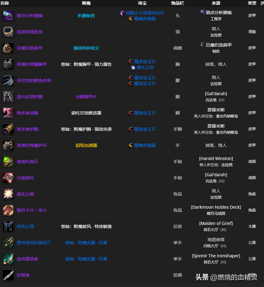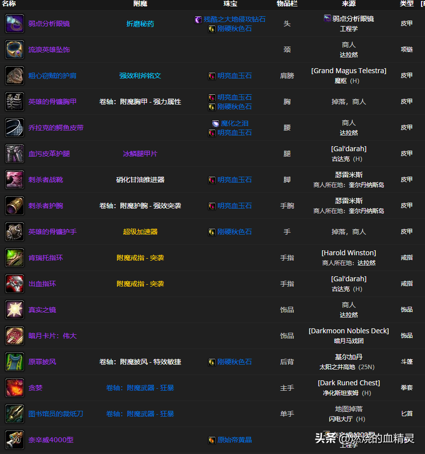 三 敏锐盗贼团本前期毕业装备和附魔一览