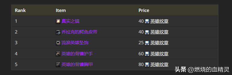 能用英雄纹章兑换的装备