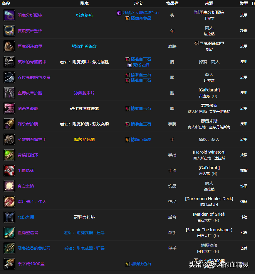 一 战斗盗贼团本前期毕业装备和附魔一览