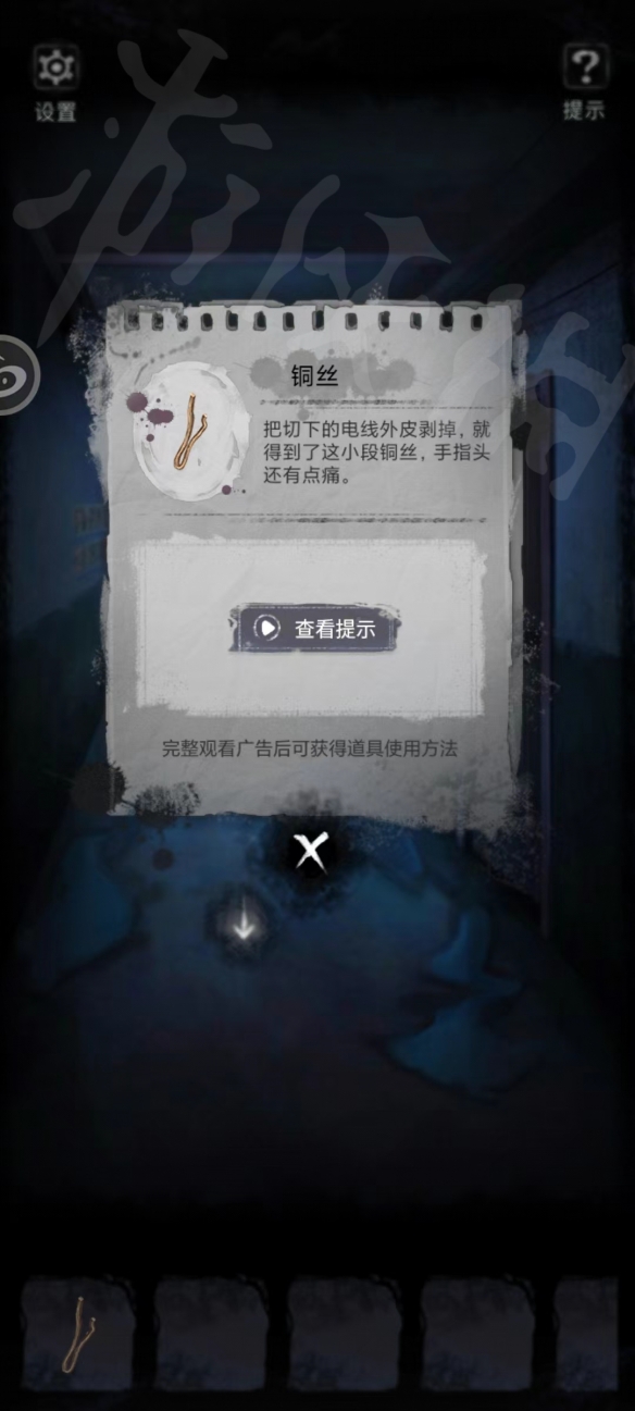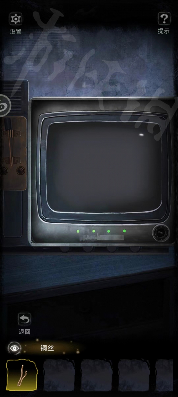 15. 回到有电视那个房间,对着电视旁边面板使用铜丝,点击面板打开电视
