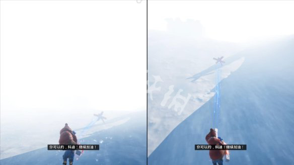 4.继续前进,小梅在模板上拉动下方有钩子的装置,然后把科迪运到对面。通过之后又是一段刺激的滑雪之旅。