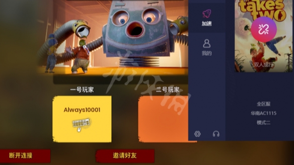 玩家在双人成行邀请好友一起游戏时会出现另一个玩家已经掉线,这时候玩家需要检查自己的加速器是不是断开了,断开了就重新链接,或者换一个加速器重新开始游戏。