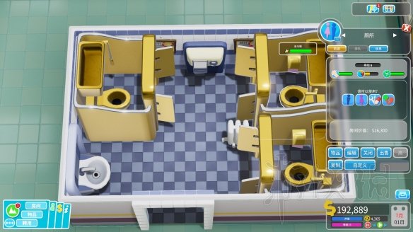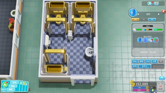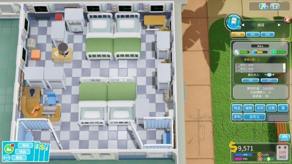 我记得好像只能四星,哎,我的五星级酒店啊。好像可以轴对称,门好像要顶格。总计10个墙挂显示器,7个药柜,+17%诊断。