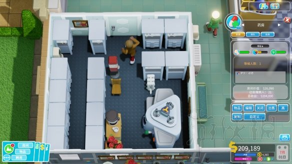药房是治疗科室里面最重要的,你们很多人肯定以为药房最赚钱吧。其实不然。因为他虽然能治疗很多疾病,但是就是这样,所以大多数疾病比较便宜,我记得有害动物一个1.2W,药房大多数病人0.6W的样子,不过性价比确实是最高。你可能会想,其他治疗科室贵,但是,你想想,一旦房间做出来,你再也不用花钱了,纯粹赚钱,其他治疗科室治疗一个等于你两个,然后除了药房,基本上一个护士可以管完所有其他治疗室。