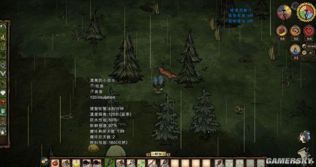 花伞,属性如下。材料是4树枝,3草,6花瓣。不过我感觉这个防雨属性有问题,应该是百分40