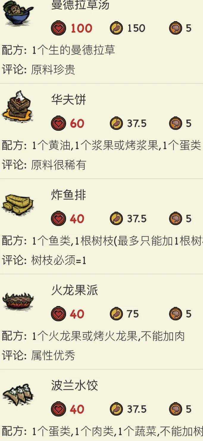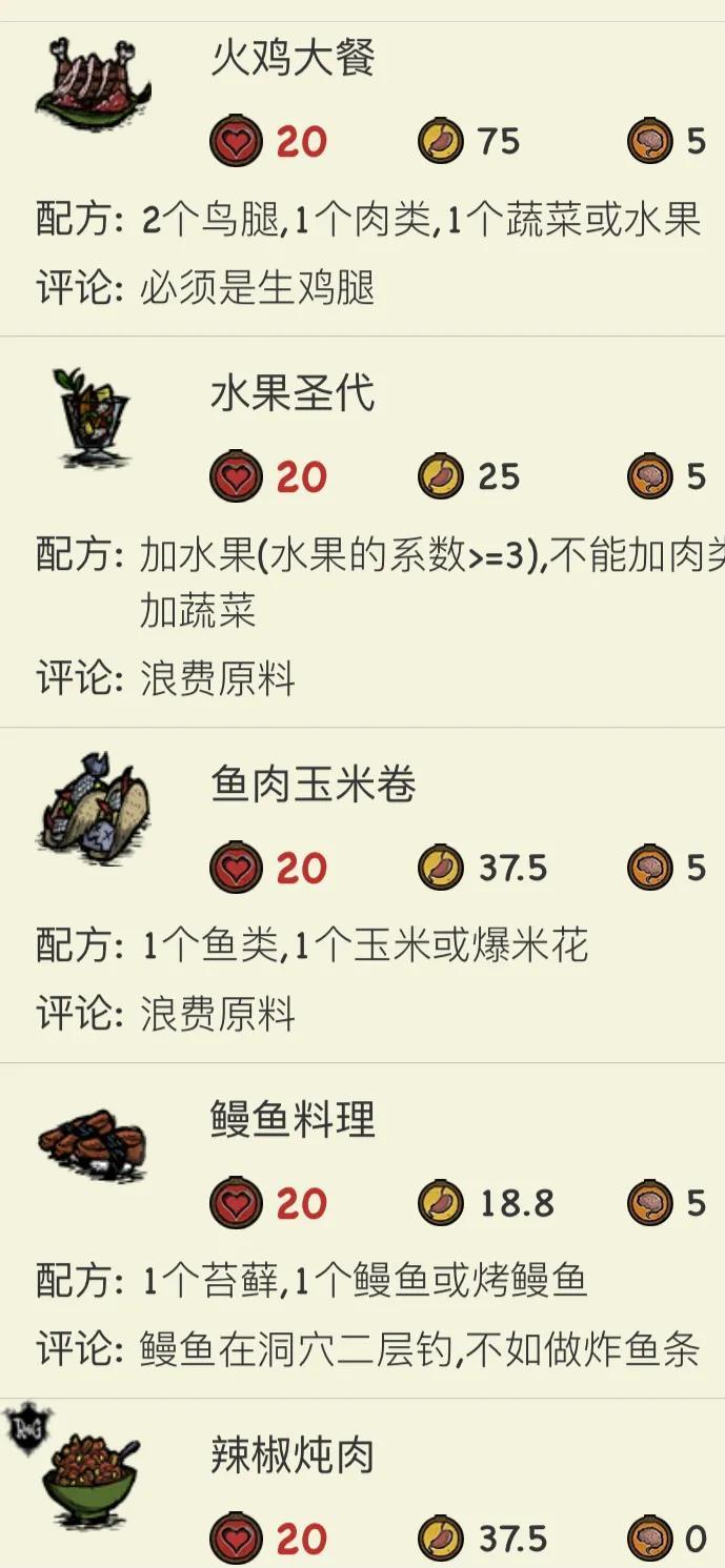 用铲子移植干草从、浆果林和小树枝。 烹饪锅鸟笼。冰箱。帐篷(新手建议做出来)雪球发射器夏天之前必须做出来。避雷针就不用说了吧必须要的。暖石冬天必备打牛可以获取牛角和牛毛如果运气不好的话没有牛角 那就做个冬帽也行冬天有几率出现Boss巨鹿千万不要在家呆着它来的时候切记切记单机版和联机版是不同的联机版夏天会有蚁狮可以用29个火药+在打几下就挂了很简单打不过的话可以每隔几天喂几个石头给他。地面就不会塌陷了。 最后祝大家玩得开心 最后放几个常用和不常用食谱