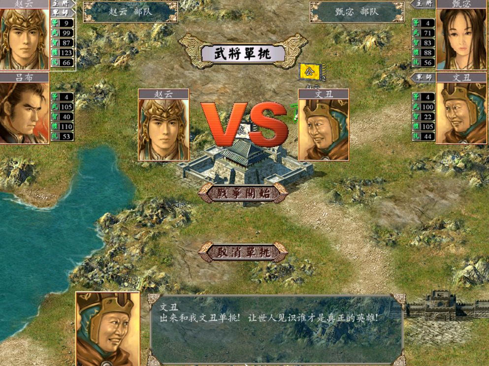 之前单挑吕布胜了,收押劝降后,刚好可以让吕布和赵云组队。其实这时赵云一个人就可以了,之所以加入吕布,主要是防止意外翻车,让全胜记录出现瑕疵。