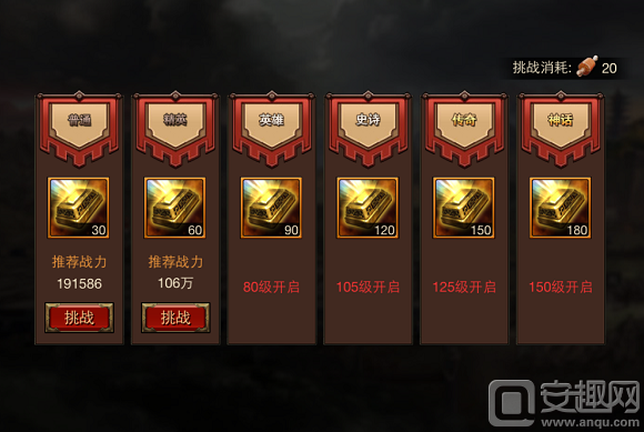 不同的战力我们可以选择不同的难度,难度越高的获得精铁就越多.