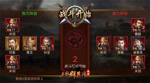 双方实力想当时我是建议用黄忠+刘备,因为黄忠是英雄里攻击时间最短的,而刘备的技能是没达到cd之前任意选择英雄释放技能,这样攻击速度就提高了,人家攒cd的时候,咱们黄忠放技能,他们第一波攻击的时候我们刘备给黄忠技能,刘备技能放完后黄忠的技能已经恢复了。所以相当于咱们比他们多出两次攻击,赢的几率就大大的提升了。如图我们一个将都没死就赢了(可能有人觉得黄忠刘备都是黄将,可能不是很吃香,但是化神后他们都可以变成红将。所以此套阵容后期使用即可。)