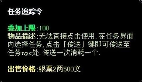 任务追踪令可以帮助玩家快速到达任务功能地区,迅速的完成任务。使用很简单,在商城购买后,打开需要完成的任务,点击任务框的左下角的“传送”按钮,系统即可提示是否进行传送,点击“确定”即可快速到达任务地点。需要注意的是,有些任务需要达成一定条件才可以交付,如果使用任务追踪令将直接传送到交付NPC身边,但是因为条件未达成,也是无法交付任务的。这时候就需要玩家仔细看一下任务说明,完成任务条件。