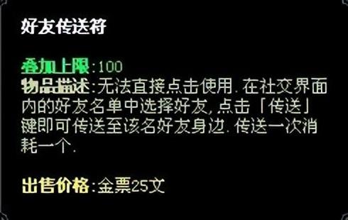 好友传送符可以帮助玩家快速到达好友身边,达到好友任务、PK快速支援的目的。使用与任务追踪令类似,也可以在商城购买,之后需要在社交界面找到需要支援的好友,点击社交界面的下栏的“传送”按钮,系统即可提示是否进行传送,点击“确定”即可快速到达好友身边。