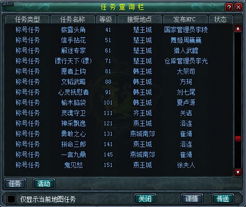 《秦始皇》提供了多种称号供玩家收集,每种称号都有其特定的属性加成,这些称号可以通过NPC颁布的任务获得,部分称号任务的出现会有等级限制,如果没有达到对应的等级是会无法看到称号任务的。