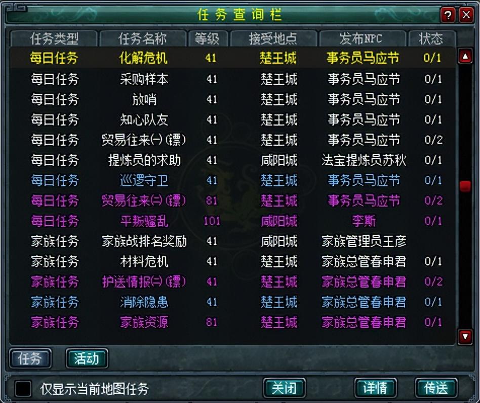 当玩家角色等级达到一定等级后,可以通过任务查询栏处查看可以进行的每日任务,每日任务的可完成次数最高为2次,任务内容包含了地图探索、贸易镖、肃清怪物,物资收集等。需要玩家每日付出几个小时的时间来完成。并获得各种可观的任务奖励。