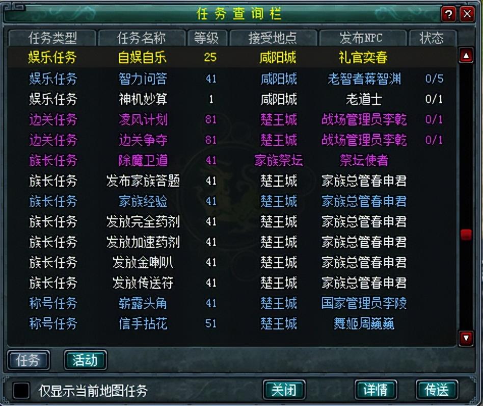 在《秦始皇》中,除了上述的几种类型的任务外,还有各种娱乐活动,通过购买娱乐时间,在对应的地点就能进行娱乐任务,娱乐任务时长和购买的娱乐任务时长有关。进行娱乐活动的同时不但可以获得固定的角色经验值,还能通过娱乐活动获得其他任务需要的部分道具。