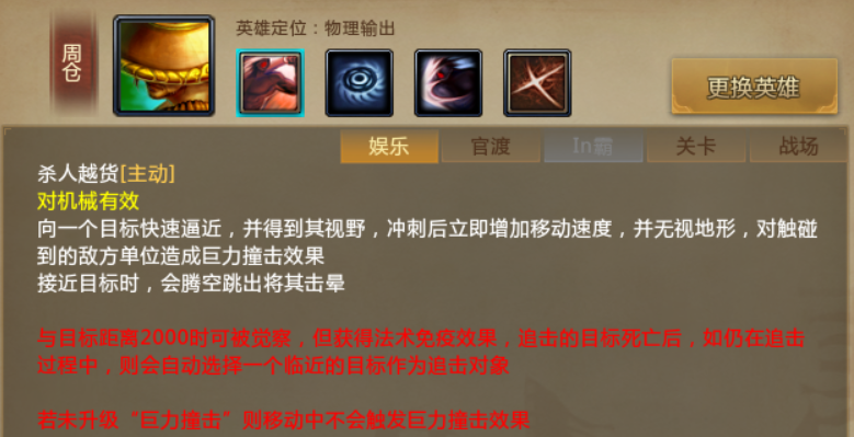 可以肯定的是,周仓必须主点杀人越货这个技能,因为它是周仓前期的核心技能,而且等级提升以后带来的效果提升也是很明显的。周仓更多的是前期的单杀能力,而到了后期,周仓的效果就大不如前了。