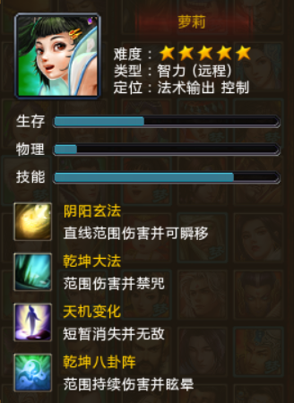 作为老牌粉丝,我相信大家对萝莉这个英雄再熟悉不过。技能我在这里也不做多余的介绍,W是位移伤害技能;E是禁魔伤害技能;R是无敌保命技能;F-眩晕伤害技能,集合位移点控保命技能于一身的萝莉,是梦三国少有全能性英雄,深受大众喜爱。