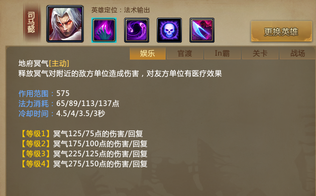 在梦三国2中,司马懿的一技能是一个非常强大的综合性技能,这个技能对敌方造成275点伤害,与此同时还能够给己方英雄提供150点血量的恢复,并且点满仅有3秒的CD,这个技能无论是在对线能力,清兵能力,还是打团战,都是十分强大的。