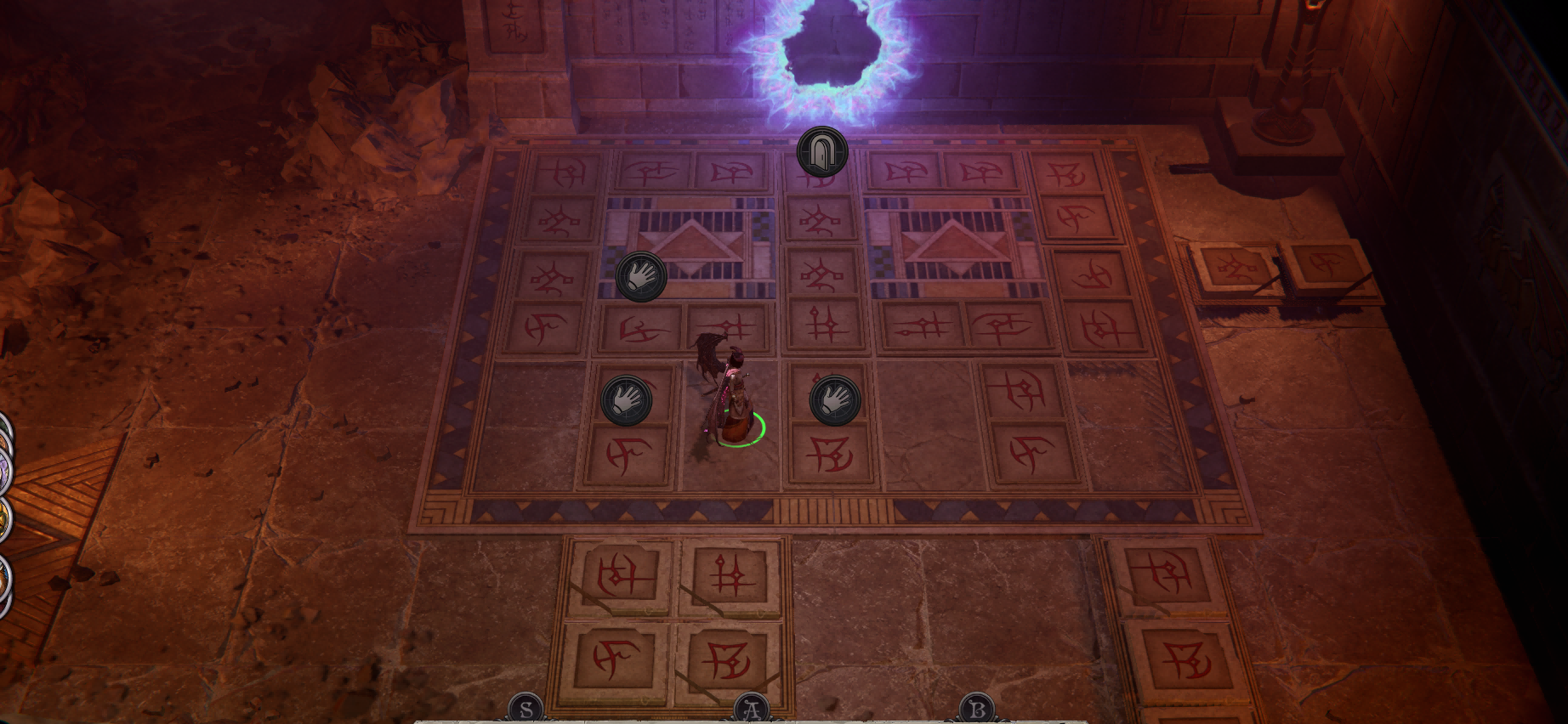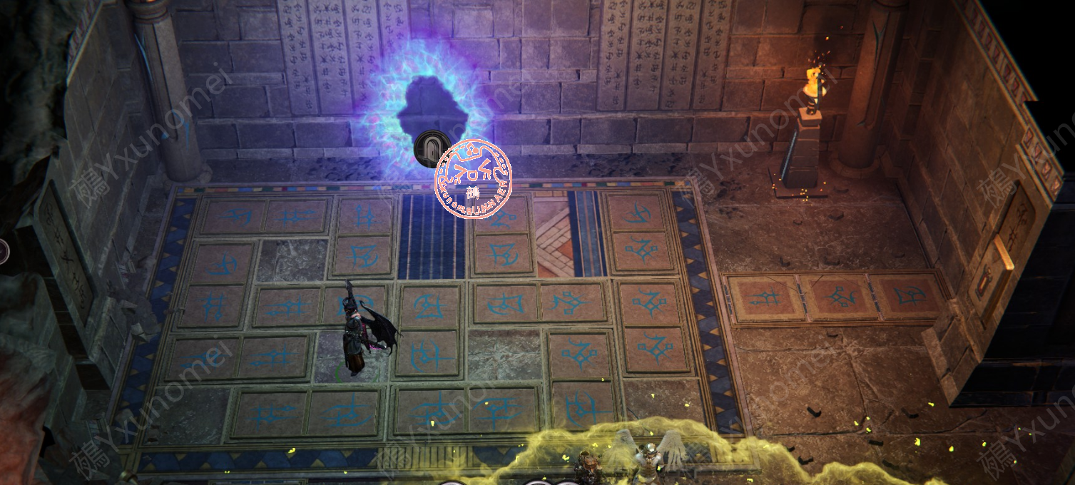 然后就是拼石板,需要注意是的一个石板上有两个小手手(互动图标)代表的是这块石板正着放和倒着放,有的旁友按攻略放着放着没石板了怎么回事,这时候点一下同一块石板位置的另一个小手手就可以放了。同理有的旁友明明按图放的怎么就是不对,看一下是不是头脚颠倒了,尤其是一块石板上两个一样图标的时候真的很不容易发现……