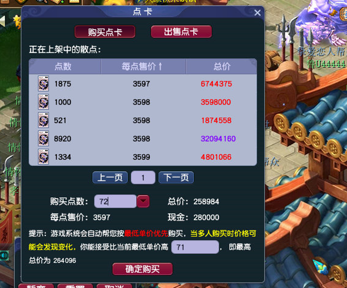 卖了些物资,换了些梦幻币后。我迅速去了秦府后院,抓紧时间换购点卡。