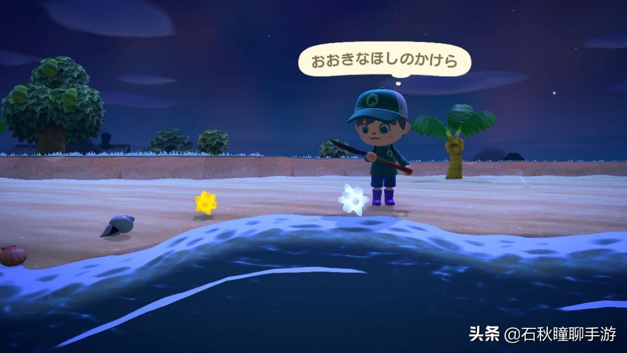 在无云的天气下,从19:00到明日的4:00,向上推R摇杆,使得画面对准星空,空手的情况下,等待流星的出现,流星出现的瞬间会有特殊的音效声,在出现的刹那按A键,即可完成流星许愿。这样第二天沙滩上就会刷新出星星碎片。