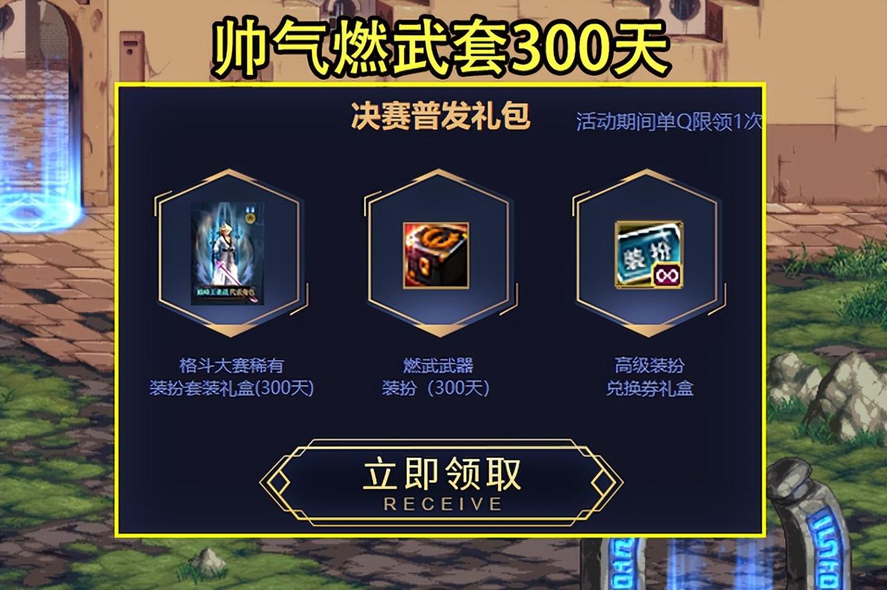 决赛普发奖励更给力,拥有格斗大赛稀有装扮套装礼盒(300天)、燃武武器装扮300天、1个高级装扮兑换券礼盒,格斗大赛稀有装扮大概率是燃武稀有装扮,想要获得礼包,需要周赛进入的前18名玩家才可以获得。