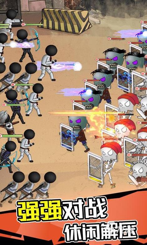 火柴人画风的打僵尸手游,玩家们可以通过收集角色来进行阵容的整合,让敌人受到更多伤害,不同关卡的游戏奖励会出现各种辅助道具。