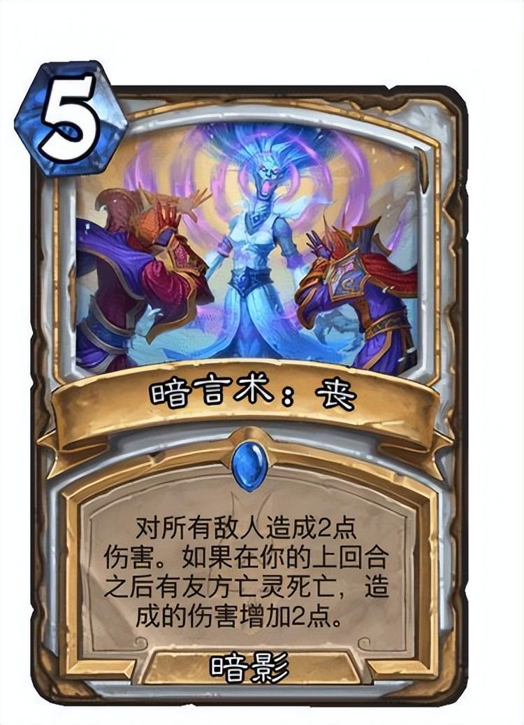 暗言术:丧可以打脸是我觉得最强的地方,4点伤害就意味着它可以加入暗牧构筑。对暗牧这样一个极限快攻来说,每一点伤害都至关重要,更不用说它还可以清讨厌的嘲讽随从,让友方随从能将伤害打到敌方脸上。
