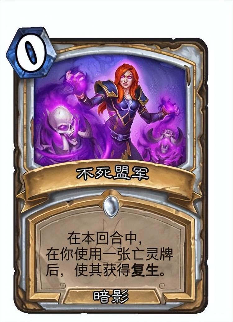 不死盟军就是这样一张卡,虽然不知道新版本有多少张亡灵可以加入牧师的构筑。但只要成功复生1到2张亡灵,就很可能一波压垮对手。