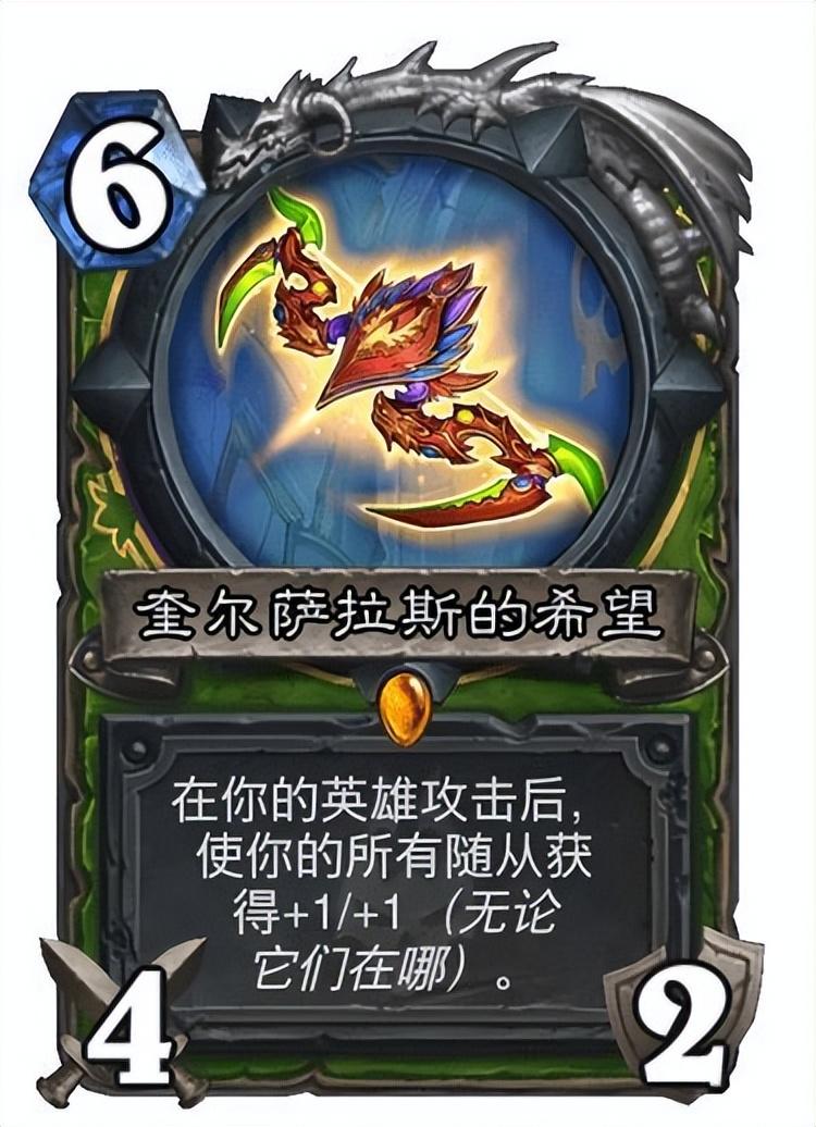 无论在哪的+1+1可以配合好多卡,比方说六费刀七费巨型来一波看不懂的场面。更为关键的是40版本的卡位很松,猎人也逐渐转向了40为主的卡组,速度慢了下来奎尔萨拉斯的希望用处也就体现出来。