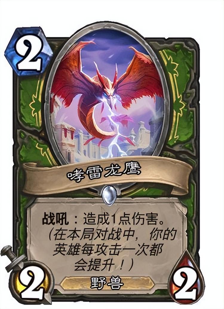 哮雷龙鹰具体强度不好说,为了他多带几把武器值得吗?但是他才2费可以配合铜须打出巨额伤害。