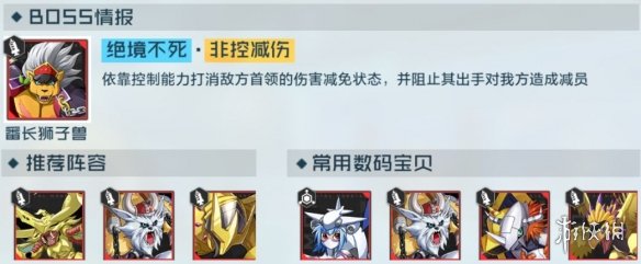 1.BOSS未处于控制状态时,会有99%的伤害减免。所以要使用拥有控制能力的数码兽,来让BOSS一直处于控制状态;