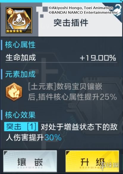 目前队长们的编队中,普遍拥有提供增益状态的游戏内数码宝贝。除弱点插件以外,对处于增益状态下的敌人提升30%伤害的突击插件也是输出型数码宝贝最佳的选择。