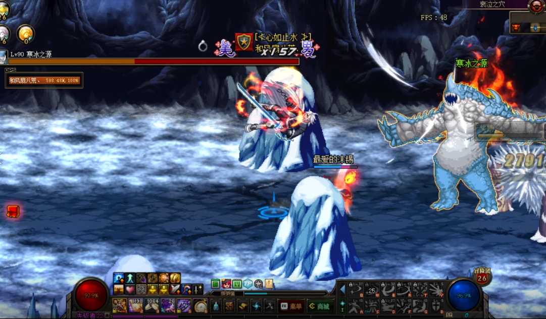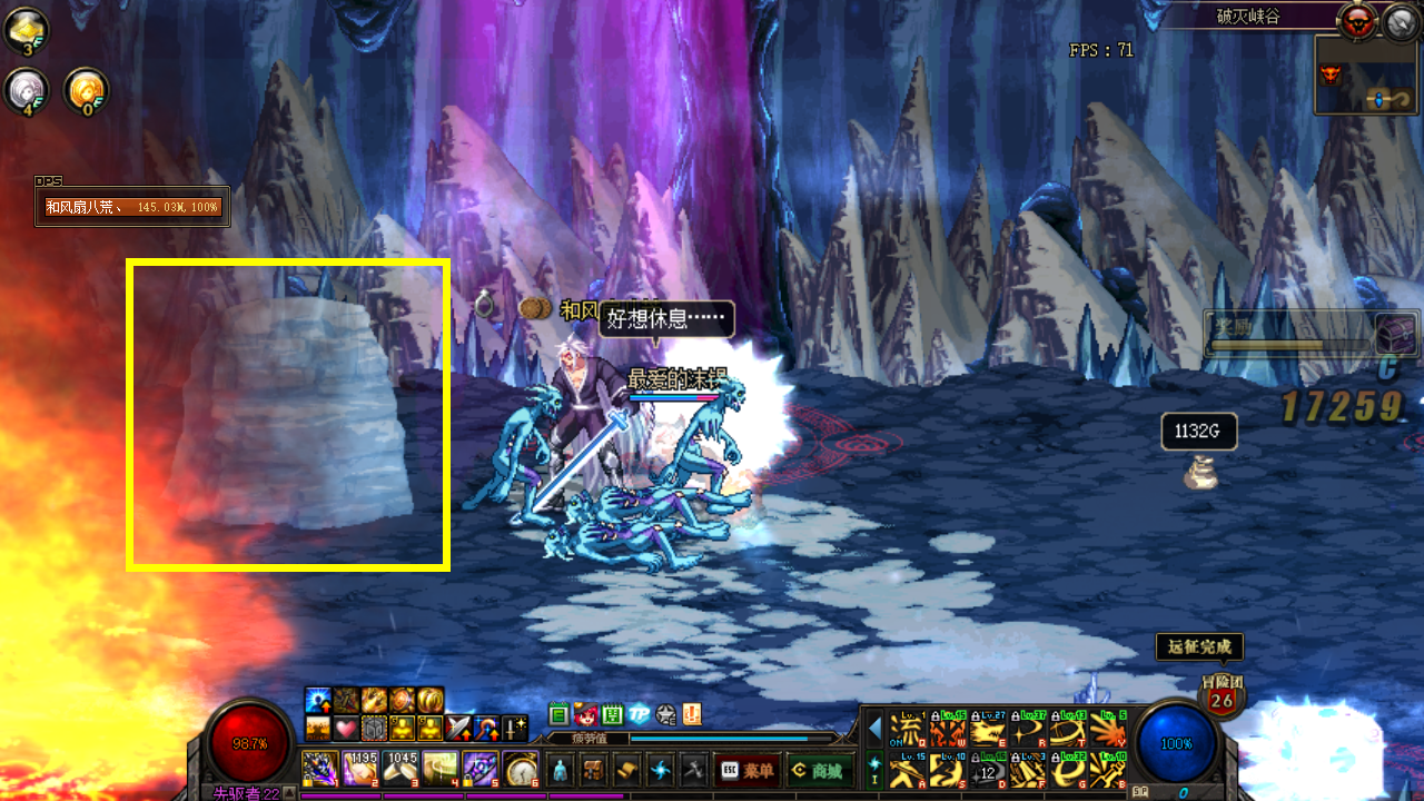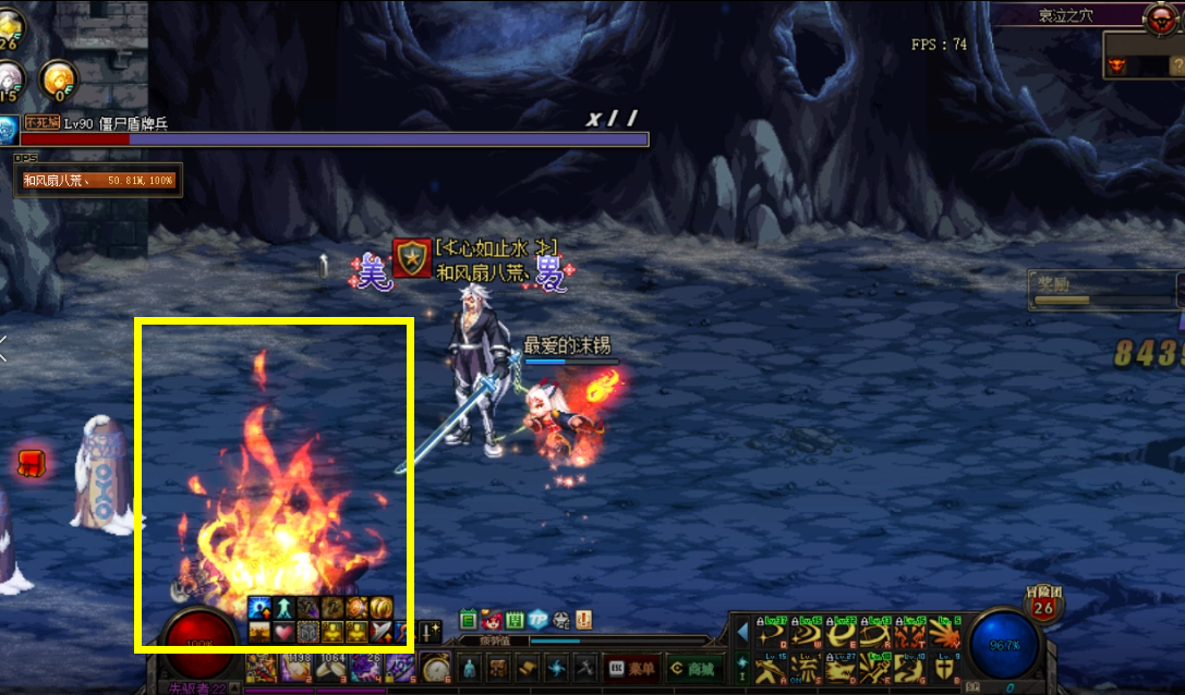 哀泣之穴难度略高一些,但是一样非常轻松简单,只需要一身远古传说就能通关,我们再第一个房间需要触碰火堆,这样身边会环绕火焰,不过这个火堆的位置基本上是百分百会碰到的。整个地图除了绿名怪寒冰之源攻击伤害比较高外,房间二有一个石像会召唤冰柱攻击,需要先打掉。