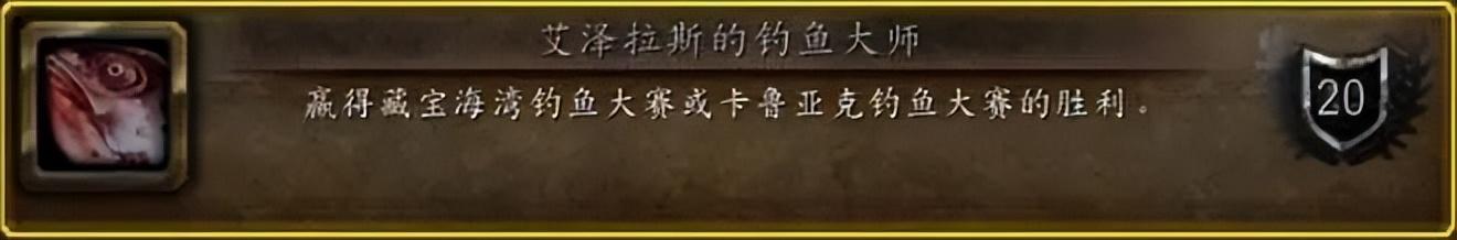 除了物品与声望奖励外,赢得卡鲁亚克钓鱼大赛还能解锁成就“艾泽拉斯的钓鱼大师”。