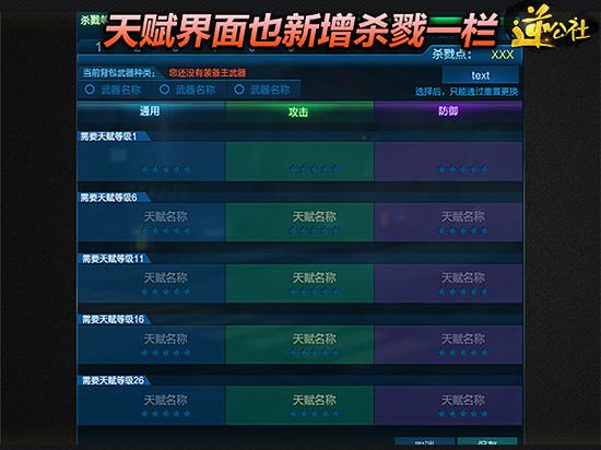 而“杀戮地带”模式也有天赋系统(玩家通过天赋界面进入),并且该模式的天赋系统比较复杂。首先杀戮天赋总共分为三类(通用、攻击、防御),其次当玩家的天赋等级达到1、6、11、16、26时都会激活新的天赋,最后每个天赋技能都可以提升至五级,所以对于杀戮的天赋系统可以用种类多、数量多、升级操作多来概括,看来想要将杀戮的天赋升满并不是一件容易的事情。