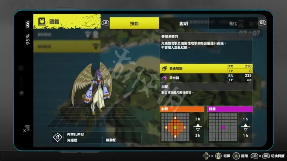 主角团移动力最高的两个究极体之一。亮点是没有属性弱点,不过因为是机动型所以身板本身也脆。比较特别的是平A有射程,定位偏向后方支援,移动到敌人在自身平A射程内。