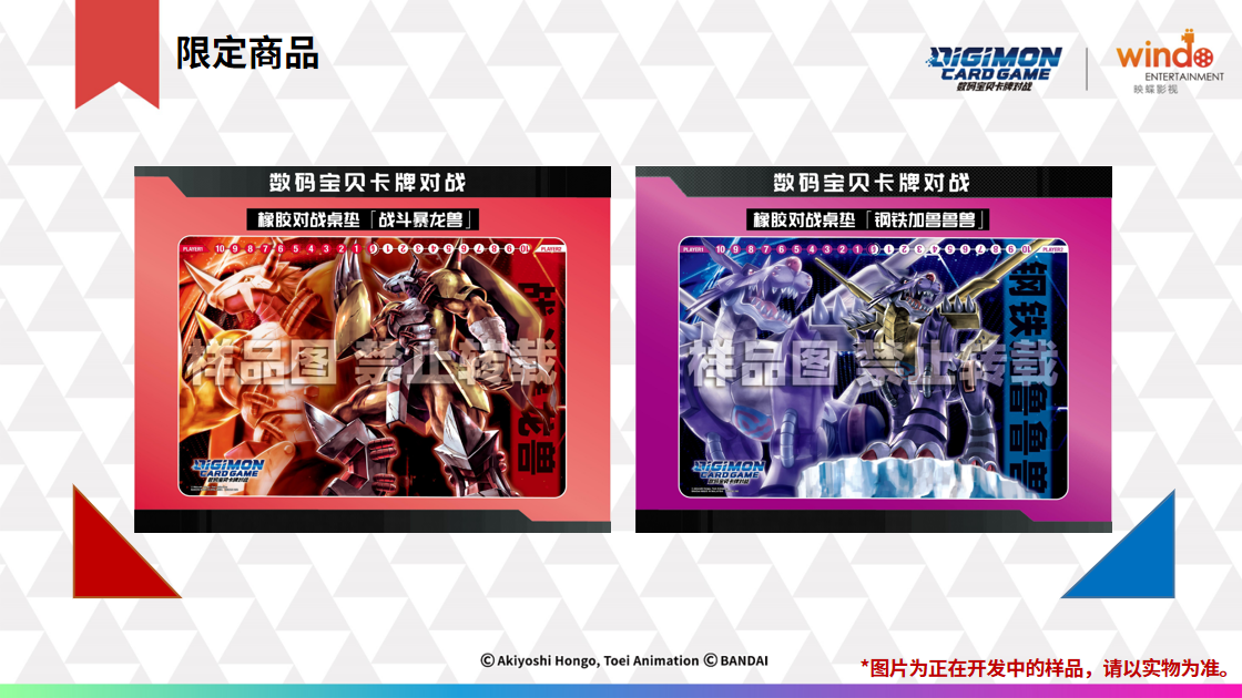 《数码宝贝卡牌对战》简体中文版宣传曲《锋芒》也在发布会上首次公开,然后火男先生继续向大家介绍基本卡组首发特别活动。并在现场首度公开了《数码宝贝卡牌对战》简体中文版一期商品展示!随即限定商品公开,引发玩家热议!
