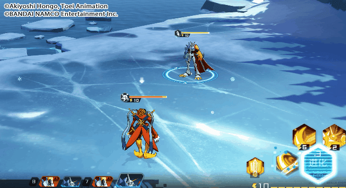 在游戏中,奥米加兽是兼具强大的输出与控制能力的数码宝贝,可以通过施放得意技,在暴龙剑的近战姿态和加鲁鲁炮的远程姿态之间切换。在近战姿态下,奥义技拥有不俗的伤害能力,且能根据自身攻击力高于目标攻击力的数值额外造成更多伤害,对基础攻击较低的辅助型数码宝贝效果显著;在远程姿态下,奥义技能对敌方全体造成冰冻控制,升星后能进一步提高冰冻概率以及对主目标的冰冻时间。