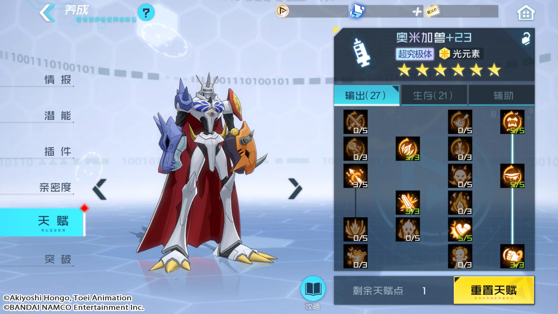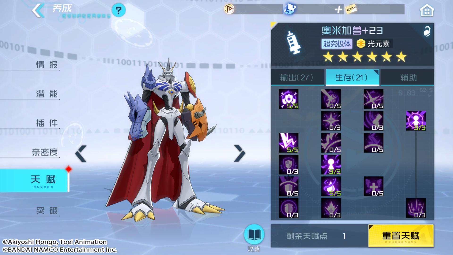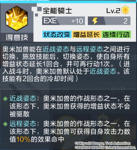 通过技能解析可以看出,游戏内的奥米加兽拥有双重作战姿态,可通过得意技自由切换姿态。近战姿态具有极为强悍的输出能力,可释放拥有伤害加成效果的主动技能。远程姿态则是能够附加行动禁止状态,使敌方目标无法行动,同时还能提升自身的效果命中属性哦~可以说是非常强大的兼备输出和控制能力的游戏内数码宝贝,相信奥米加兽在队长的阵容编队里会有不错的表现!
