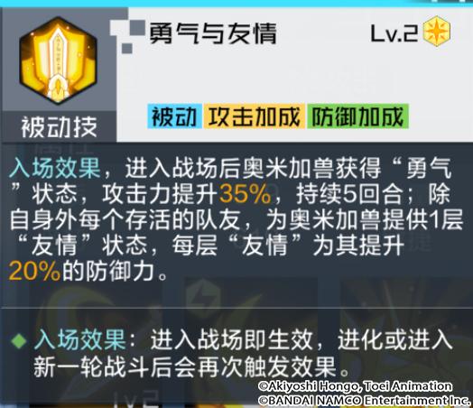 技能解析:奥米加兽在入场时会获得高额的攻击加成,同时能根据存活的队友数量获得强大的防御力加成。