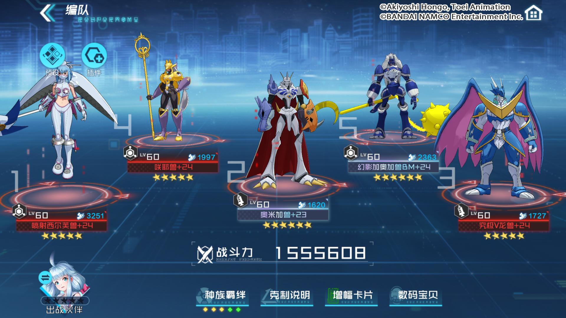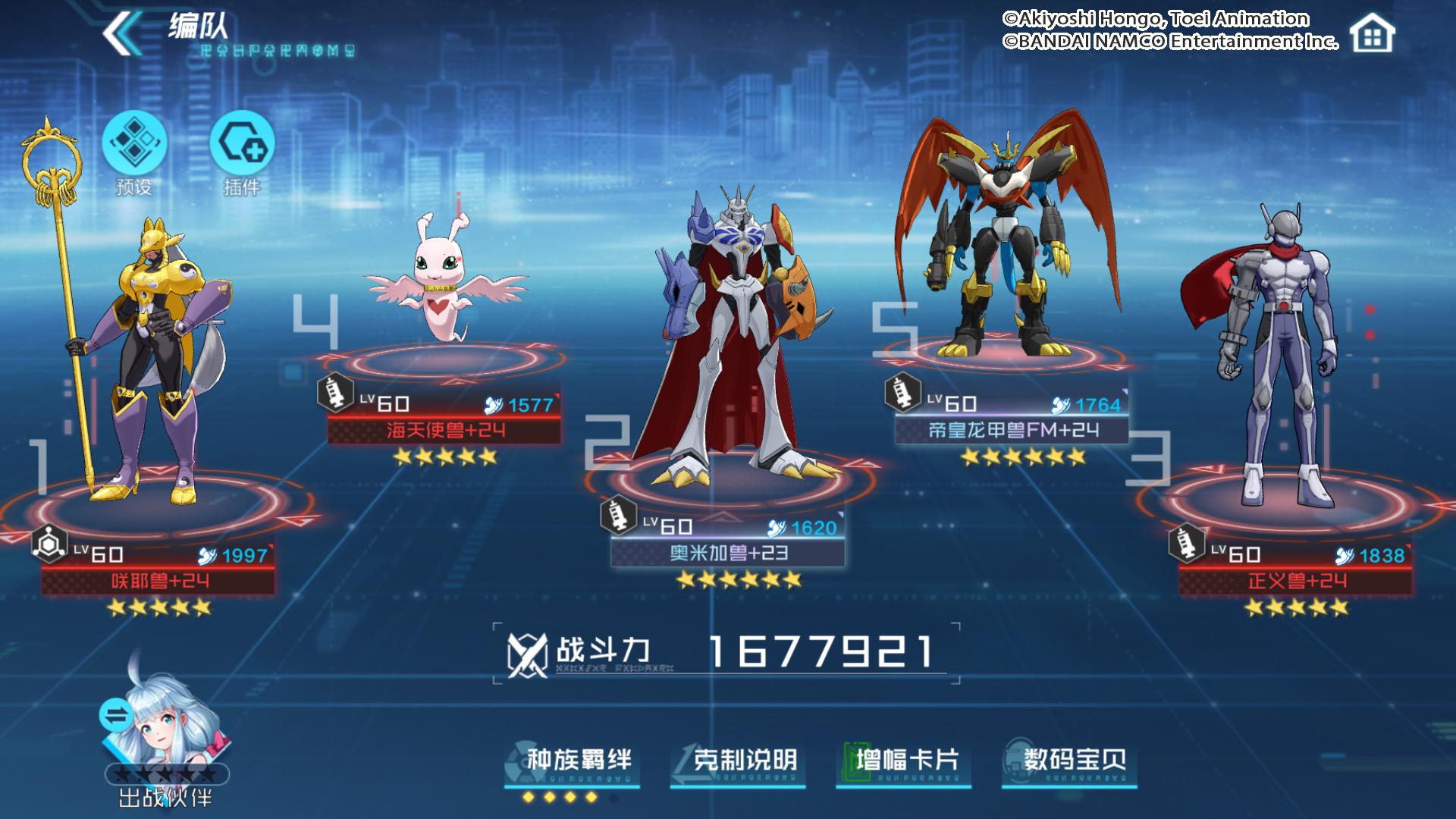 PVE阵容搭配:奥米加兽-咲耶兽-帝皇龙甲兽FM-正义兽-海天使兽