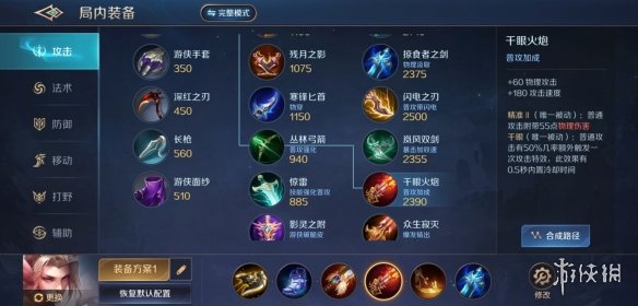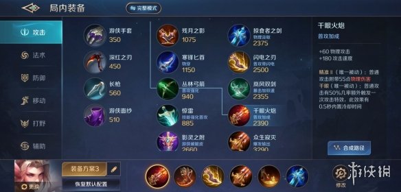 此套装备是传统射手的出装,爆发能力比另外两套出装要弱,但持续作战能力更强。因为技能伤害低了不少,平A成为主要输出来源,因此不太怕大招被名刀抵消。