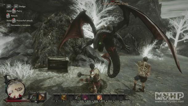 游戏的战斗设计很奇葩,大多数怪物都会后退步,挥砍时扑空的几率很高。这一点既不像老滚也不像哥特,到是有点刺客信条的味道,终结时还来一段华丽的必杀技。但悲剧的是,游戏里的人物动作十分别扭和生硬,远没刺客信条的流畅度(更别提打击感了)。