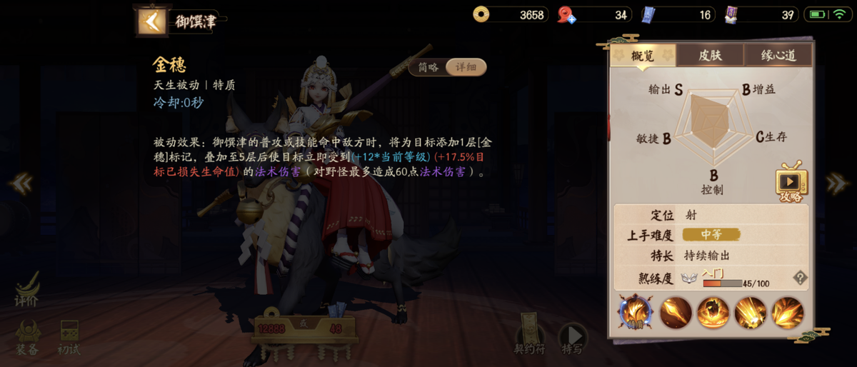 但现实往往是骨感的,当对面祭出了御馔津或管狐这类前期技能伤害高的射手后,你选个肉辅倘若再继续无脑占草,很快就会发现被白蹭的不是他们而是你。这时候你就需要针对对面做文章了,例如管狐其实是没有后劲的射手,也就是他的技能交完后便基本无威胁了,这时候你就可以往前压制,为己方射手争取发育空间,甚至是打对面一套。但是御馔津有双速叠加跟增伤被动,即便是她把封魔矢跟箭雨交了,仍旧有后劲跟你打,所以你要见机行事。